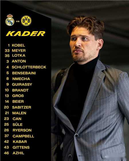 北京时间10月23日凌晨3时,多特蒙德将在欧冠联赛阶段第3轮客场挑战皇家马德里。多特蒙德方面公布了球队此役的大名单,塞罗-吉拉西领衔,费利克斯-恩梅加、布兰特在列。